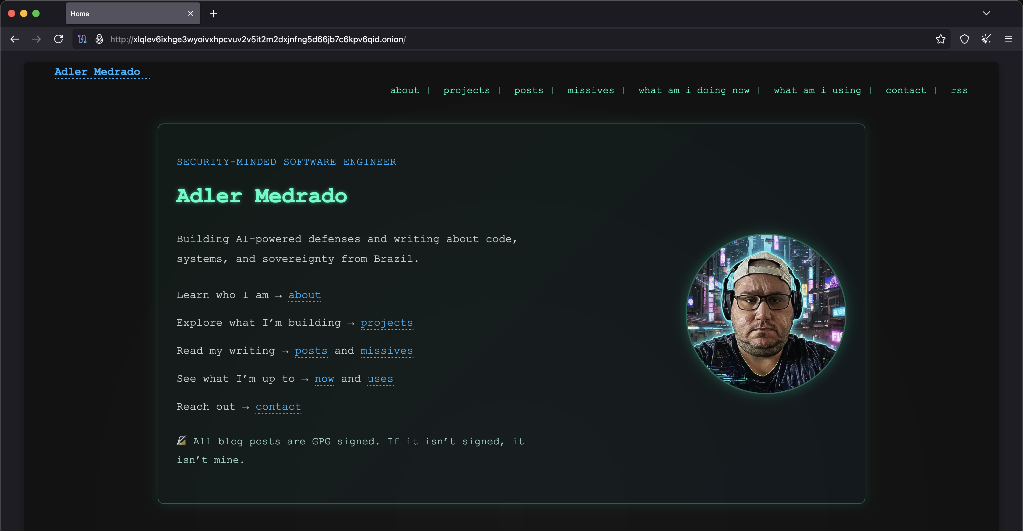 And now it’s also available as a .onion service, so anyone can access it anonymously — no intermediaries, no surveillance, no fingerprinting, none of the clutter and nonsense that plagues today’s web.